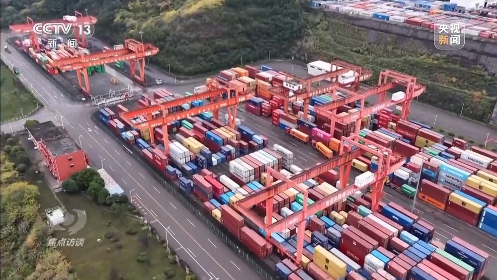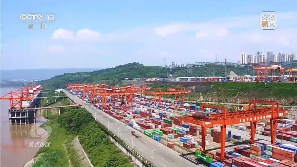 重庆海事局副局长 孙华:公、铁、水通过果园港多式联运,有一部分外贸运输走出了东盟,走到了南美洲,也是我们的祖国外贸提质增效,双循环、双通道建设的重要着力点。