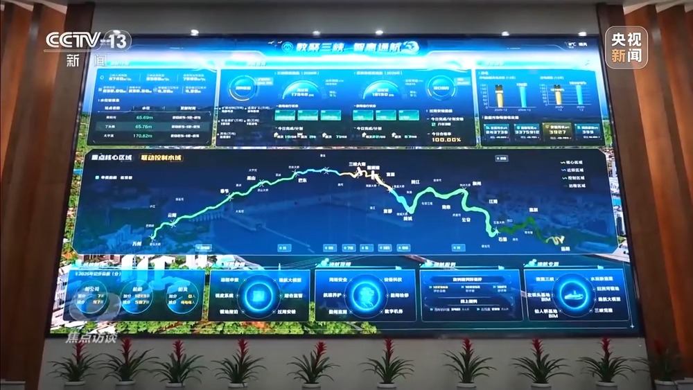 这里有智能化水上交通管控系统,面对川流不息的九股船流,记者看到指挥现场忙而不乱,三个屏幕分别显示实时的智慧海事数字信号、监控视频、无人机视频,每一道指令和提醒都发布得准确及时。