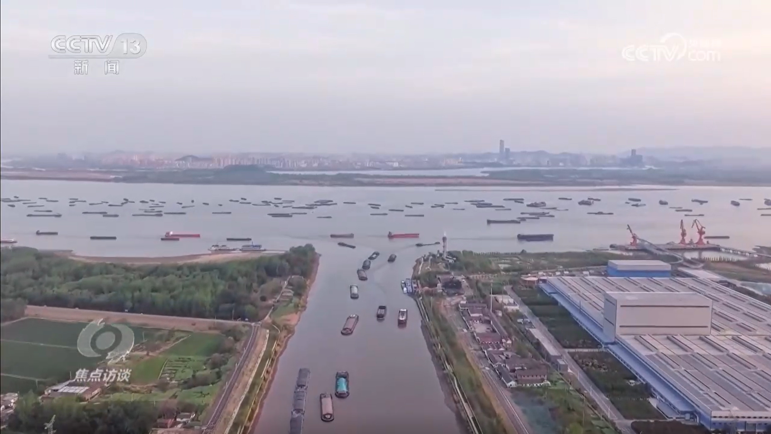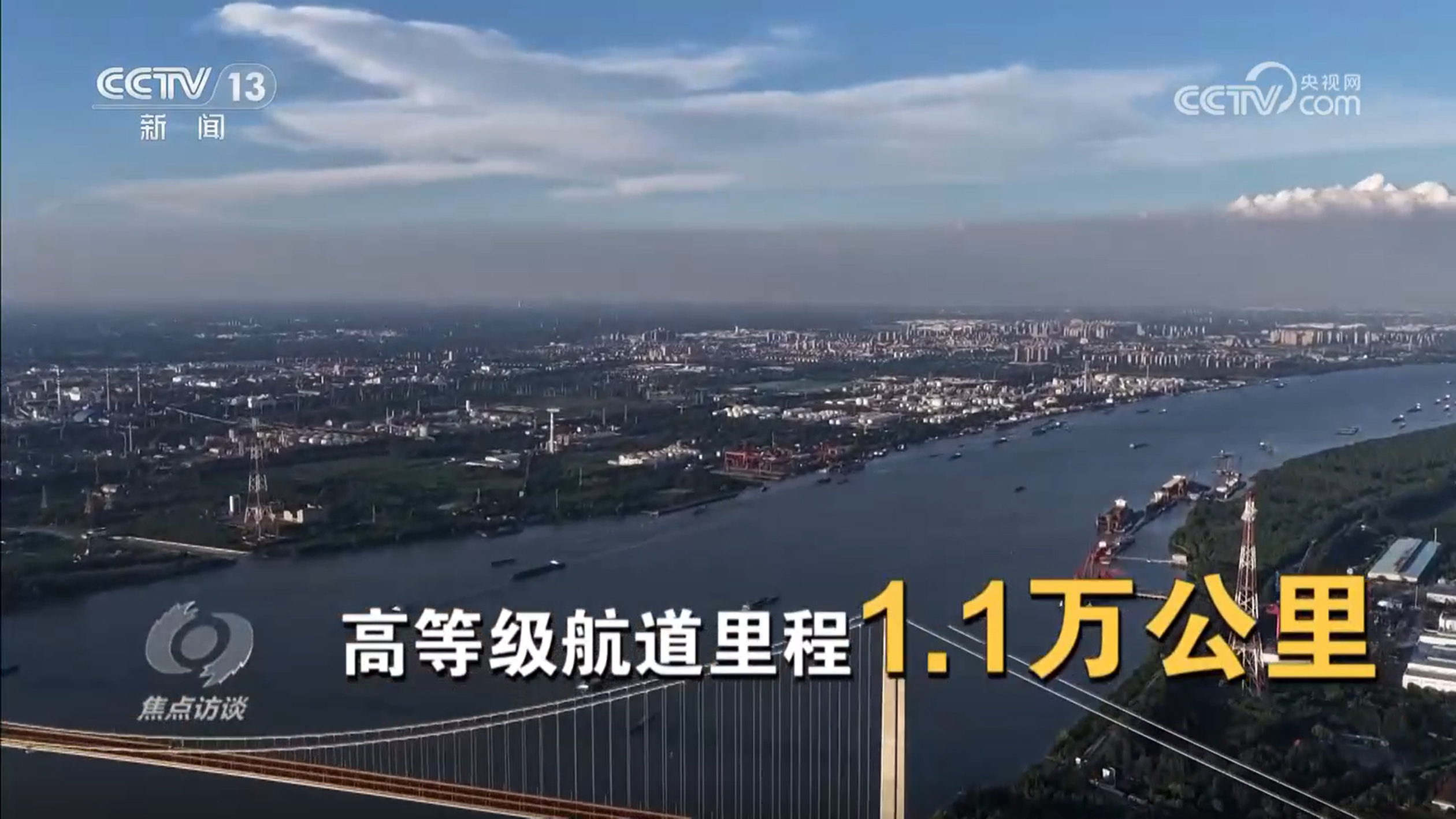 郭涛:“十年前,因为局部的堵点卡点,航道标准不能统一,水深没法贯通起来。通过十年整治和疏浚,水深显著提升了,可以通航的船舶更大了,物流成本就更低了。”