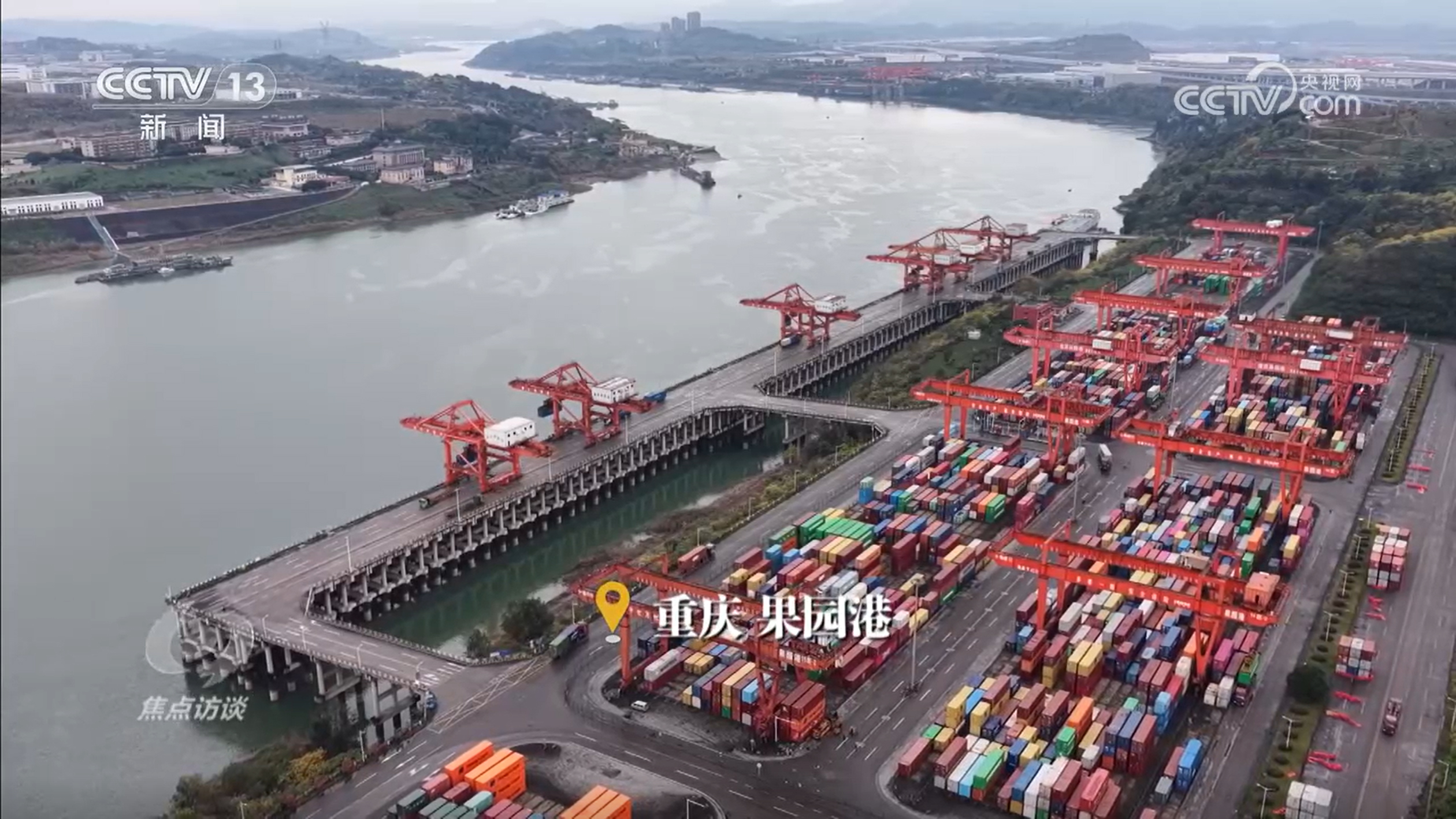 重庆海事局副局长孙华:“公、铁、水通过果园港多式联运,有一部分外贸运输走出了东盟,走到了南美洲,也是我们的祖国外贸提质增效,双循环、双通道建设的重要着力点。”